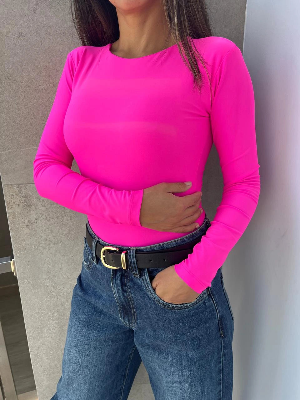 ¡Consigue una figura estilizada y curvas resaltadas con nuestro Body Estocolmo! Confeccionado con lycra brasilera de alta calidad, su ligero efecto faja te hará sentir segura y cómoda. Diseñado con cuello redondo, manga larga y cierre en el bajo con botones a presión. ¡Comodidad y estilo en un solo producto! 🖤